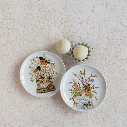 Cat & Flora/Fauna Stoneware Plate, 2 Styles