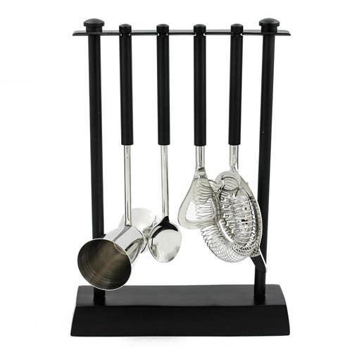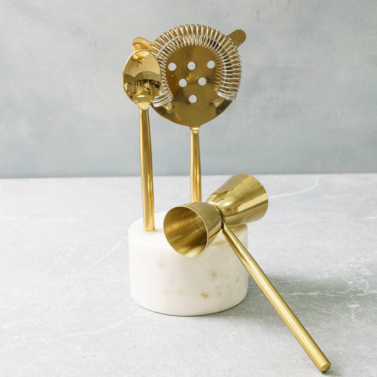 Marble + Gold Cocktail Tool Set, Set of 3 with Stand