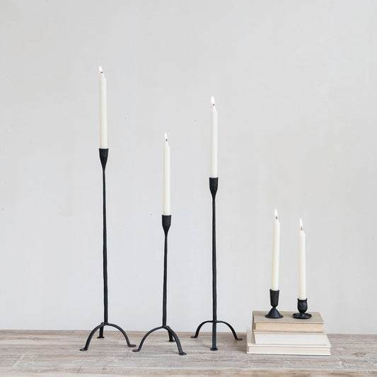 Tall Hand-Forged Cast Iron Footed Taper Holder