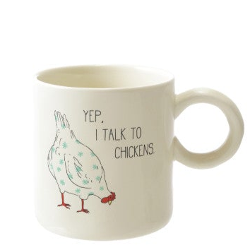 Stoneware Mug with Chicken and Saying, 8 oz.