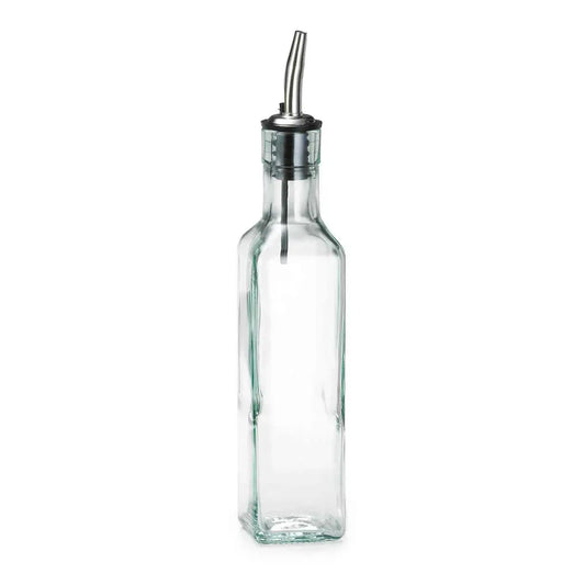 Clear Glass Round Oil Bottle w/ Pour Spout