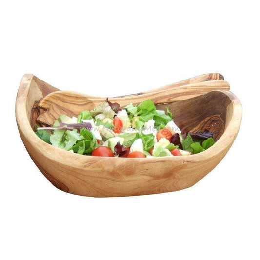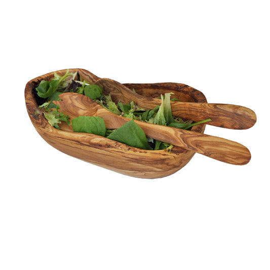 Olive Wood Boat Shaped Bowl + Salad Servers