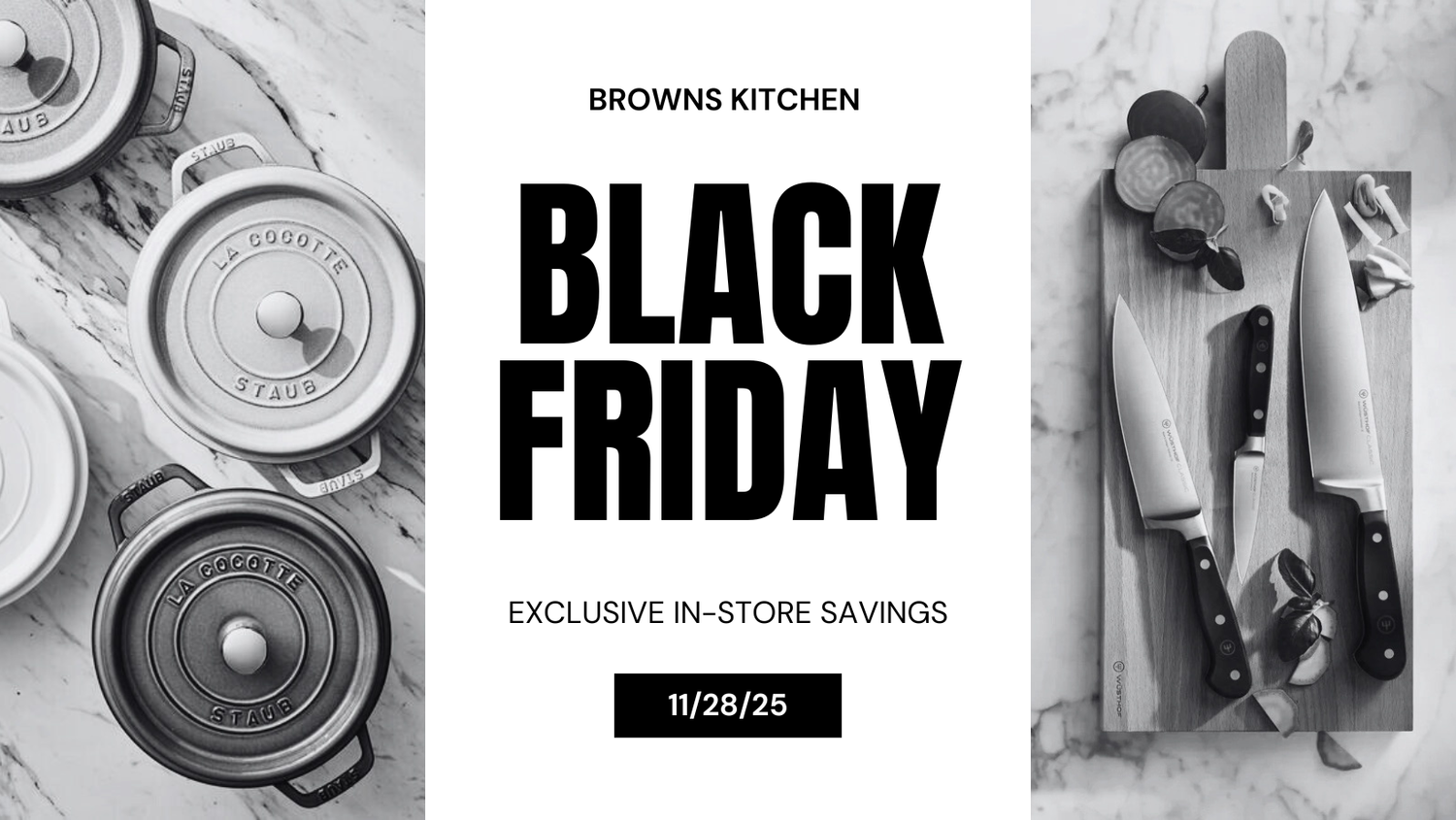 Join us at Browns Kitchen for our Black Friday Sale, where you can save big on your favorite kitchen brands and holiday must-haves.