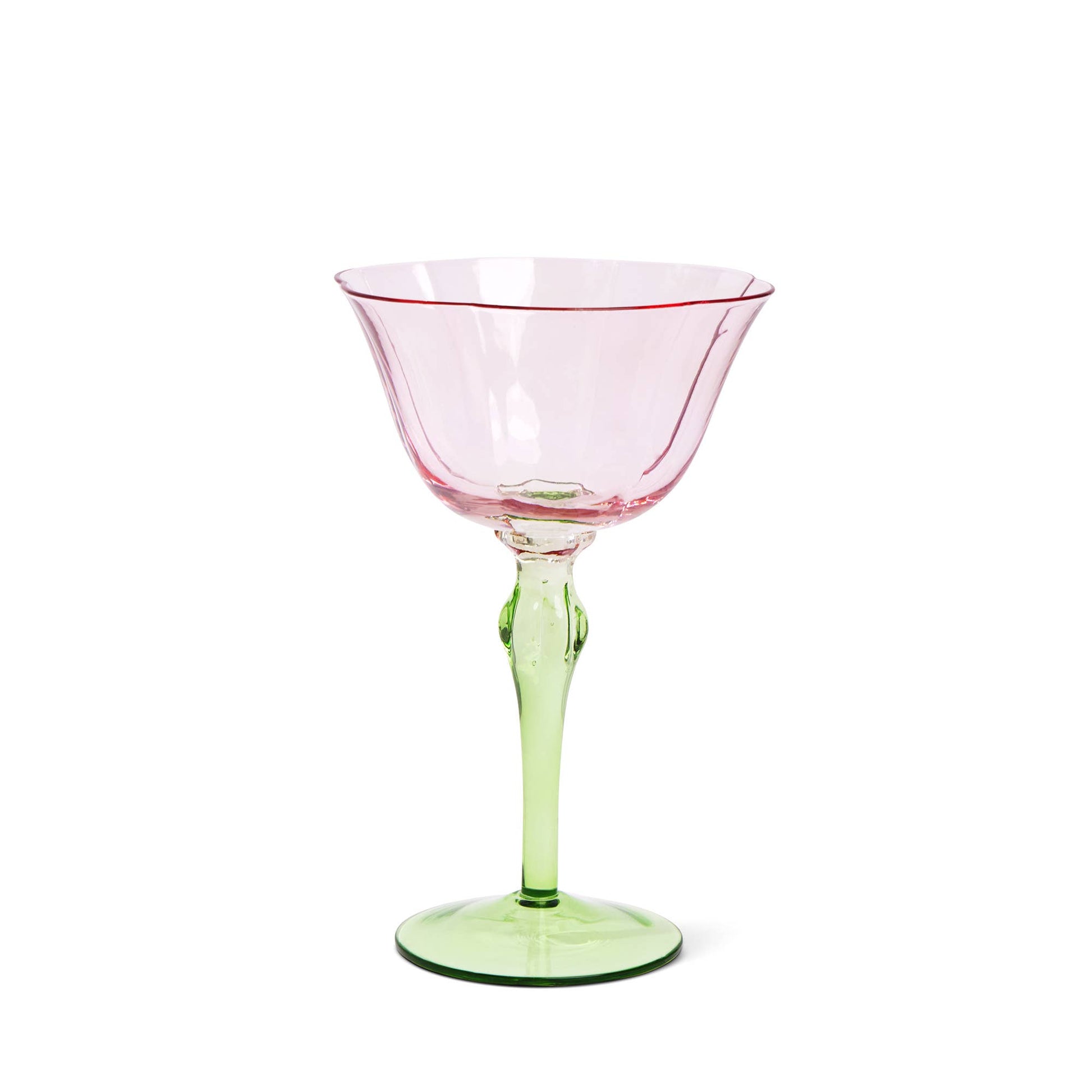 Enjoy your favorite cocktails in style with this pastel tulip-shaped coupe glass. Its two-tone design adds a playful touch, while the elegant tulip shape enhances the drinking experience by concentrating aromas. Perfect for serving champagne, cocktails, or sparkling wine, this glass brings a charming and unique flair to any gathering.