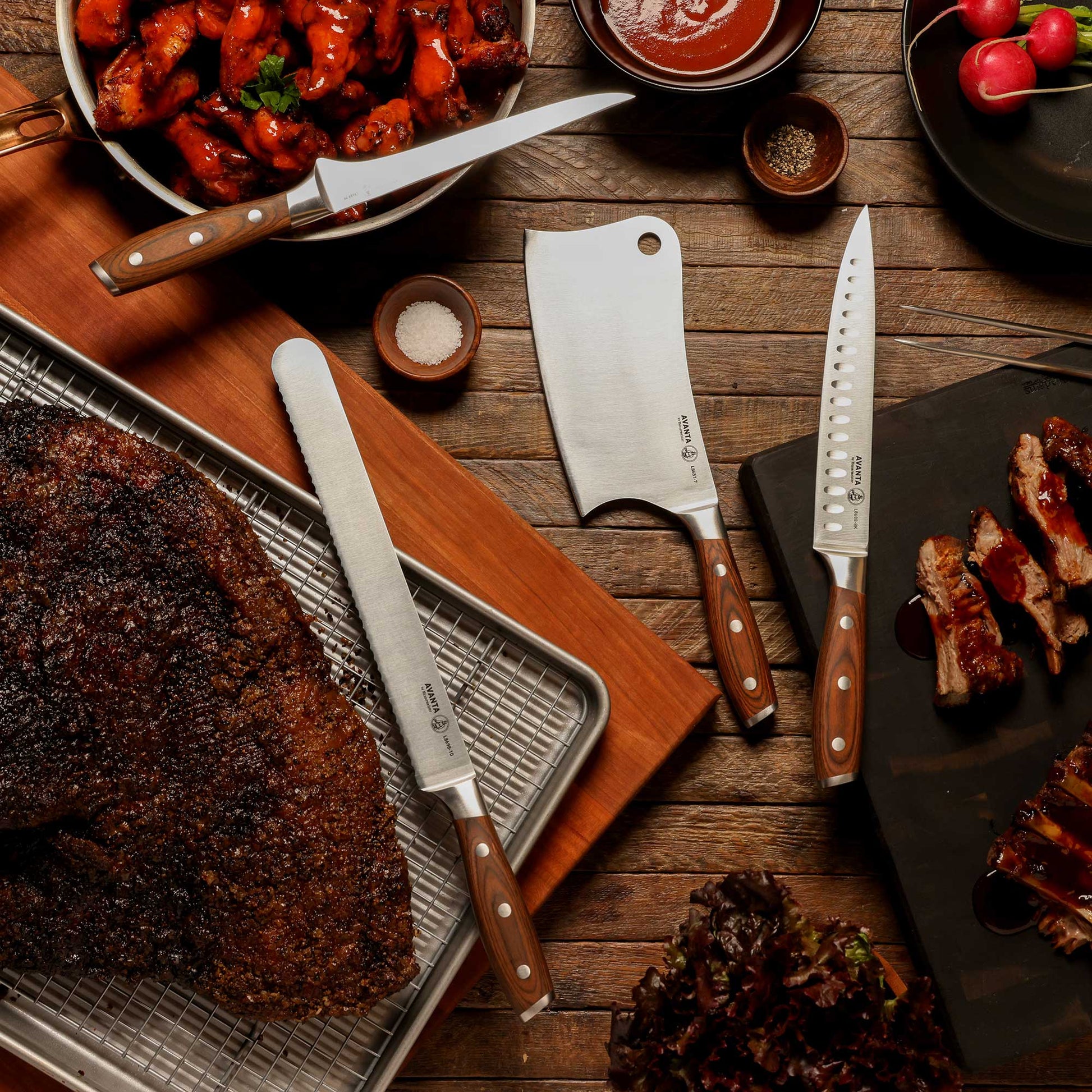 The 7" Avanta Pakkawood Heavy Cleaver is your go-to tool for tackling bones, thick cuts, and tough vegetables with ease. Its sturdy weight delivers powerful chopping, while the pakkawood handle adds a touch of elegance and comfort. Perfect for serious kitchen tasks, this cleaver combines strength and style to help you work efficiently and confidently.