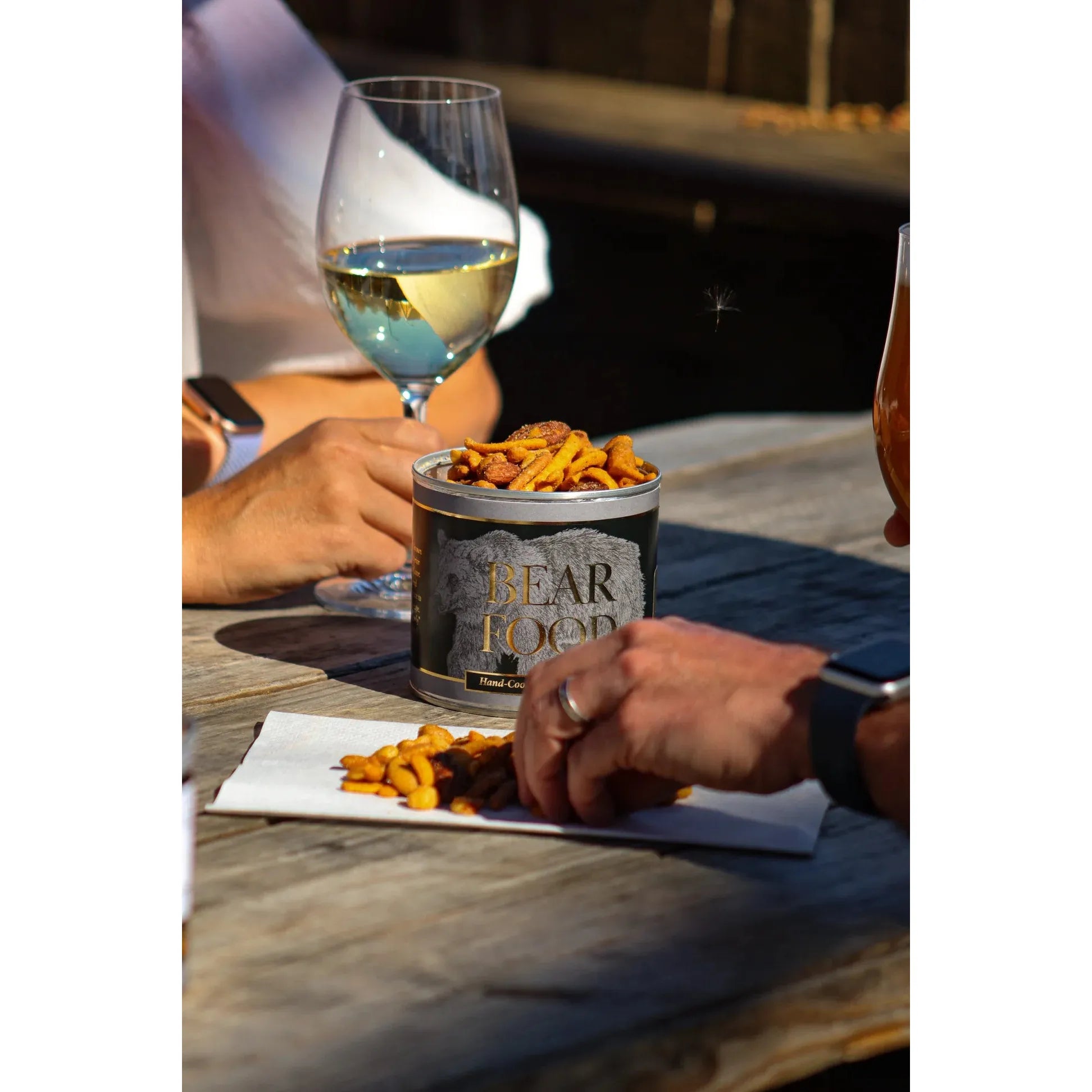 Bear Food Gourmet Bear Mix is a crowd favorite for good reason! This irresistible blend features cheddar sticks, sesame sticks, Georgia pecans, almonds, peanuts, cashews, toffee-covered peanuts, and honey roasted peanuts. Each bite delivers a perfect balance of sweet, spicy, and peppery flavors with a satisfying crunch. Made with high-quality ingredients, it outshines any ordinary snack mix. Ideal for gifting, parties, or simply enjoying during cocktail hour, Bear Mix is the trail mix you’ll keep coming back to. Once you try it, there’s no going back to the usual grocery store mixes!