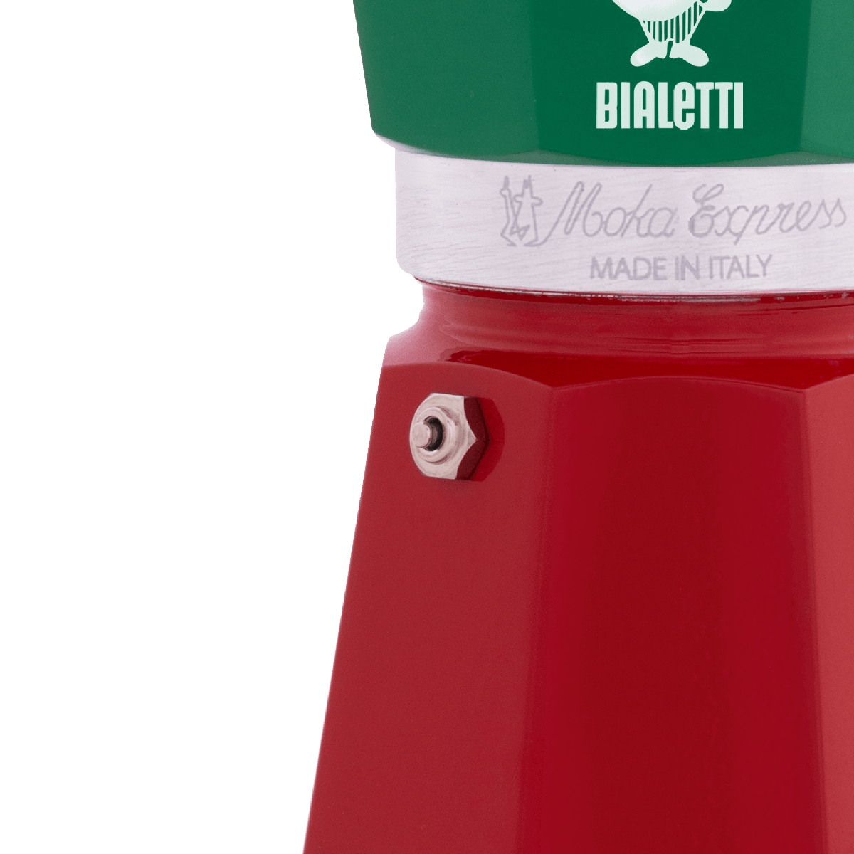The 6 Cup Tricolore version of the Moka Exclusive aims to celebrate the traditional Italian ritual of making good coffee, even in its colours.