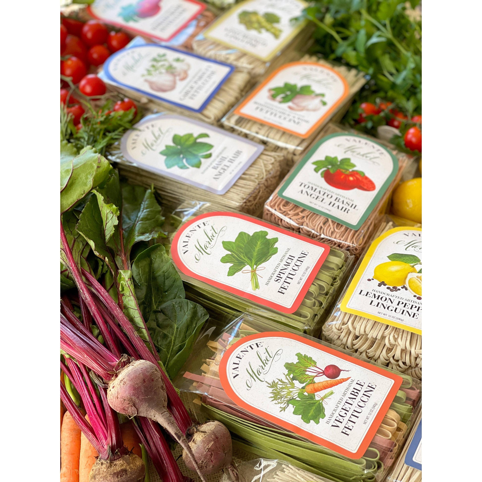 One of our favorites. This pasta tastes great with vegetables and olive oil or with tomato sauce. Cooks in 4-5 minutes in boiling water. Manufactured in our single allergen facility, it contains wheat. Ingredients: unbleached wheat flour, dried black olives, dried garlic and water