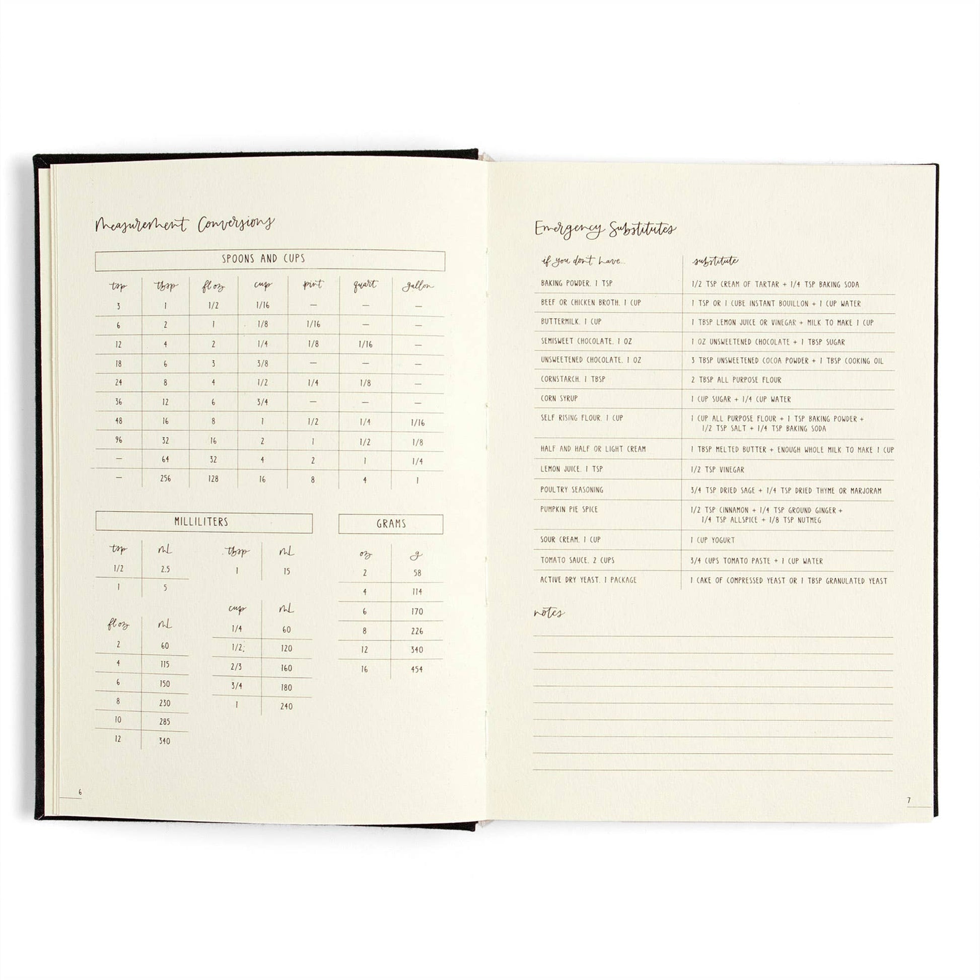 Book Includes Pages For: Table of contents 58 detailed recipe pages with sections for Ingredients, Instructions, Memories, Through the Years, Notes, and more. Cooks That Made Us section to pay tribute to family, friends, and their impact in our kitchens. Features | Cloth-wrapped hardcover, screen printed by hand, gold foil Interior | 144 pages, handmade cotton blend paper Size | Book: 8×11 1/2×1 1/2". Box: 12 1/4×8 5/8×1 7/8"