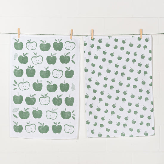 Apples Print Elm Green Floursack Dishtowels, Set of 2