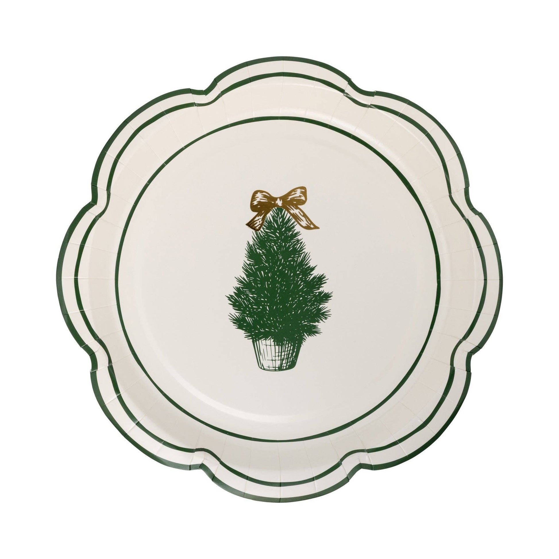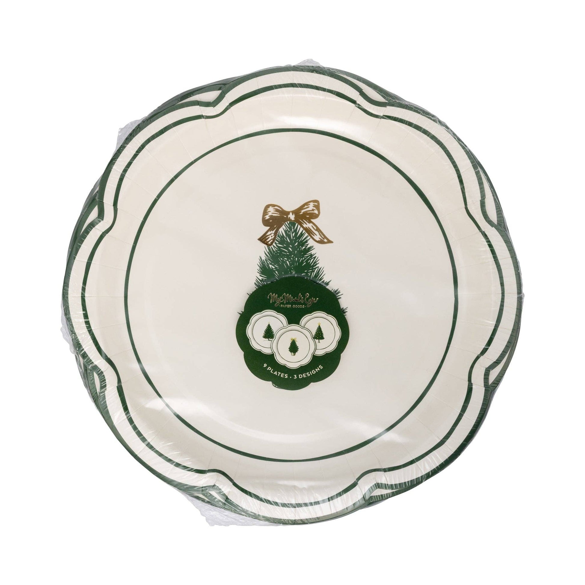 Celebrate the season with our Christmas Lane Plate Set, featuring elegant Christmas tree designs perfect for your festive gatherings. These plates add a touch of sophistication to any holiday party, making every meal feel special while impressing your guests. • includes 9 shaped paper plates • 3 each of 3 designs • gold foil • 9 x 9 inches