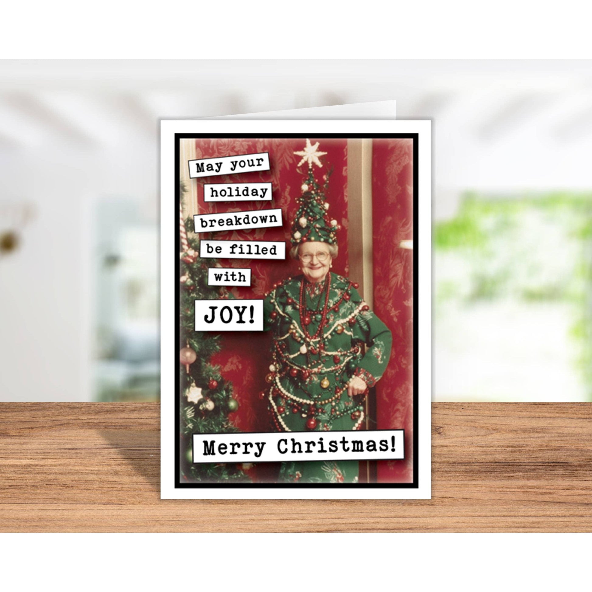 Send some honest holiday cheer with this witty Christmas card that gets real about the season. Perfect for anyone who knows that the holidays come with their share of chaos, stress, and emotional moments—and that's totally okay. This card celebrates the messy, beautiful reality of the season with humor and heart. It's ideal for friends and family who appreciate a good laugh and a little validation that holiday breakdowns are just part of the tradition.
