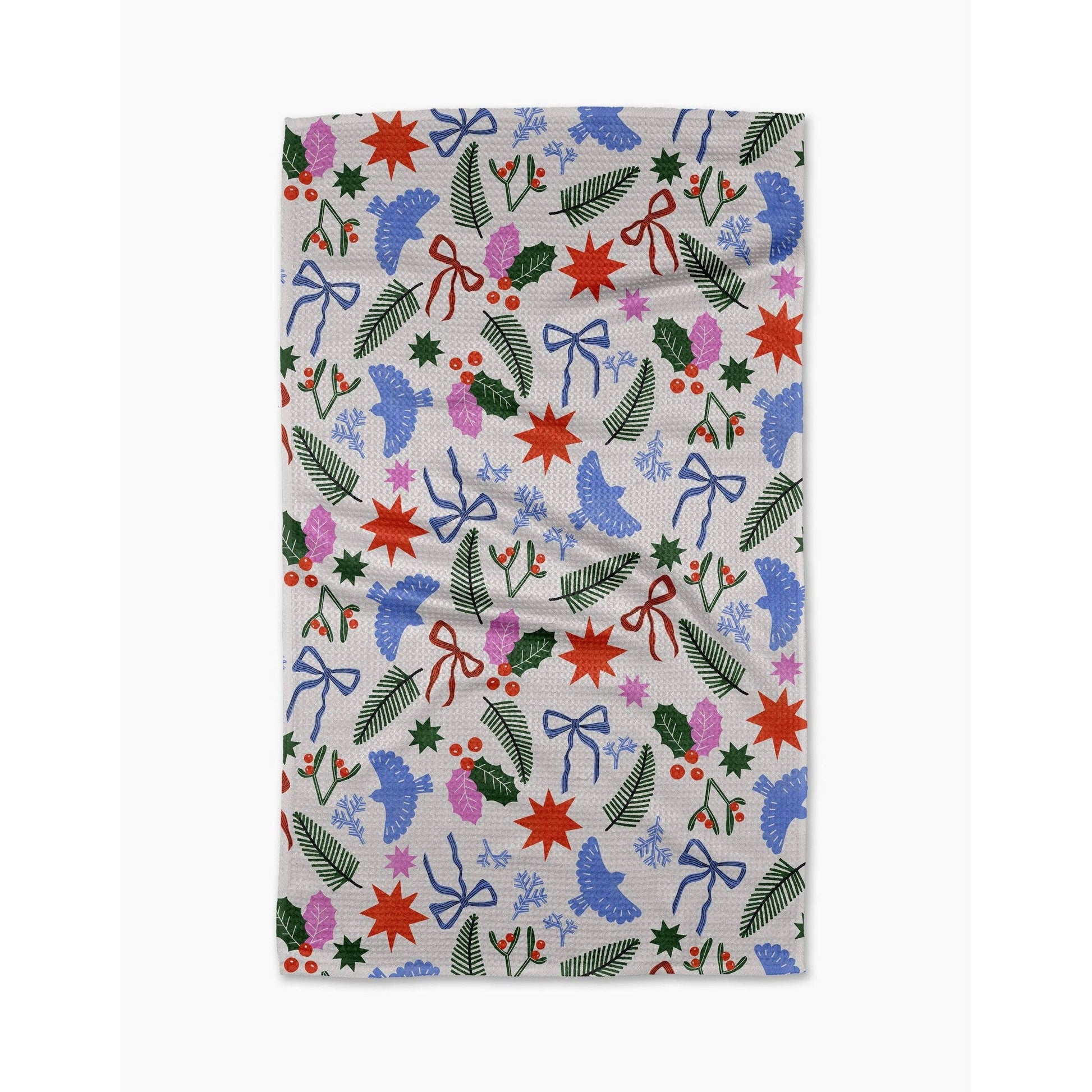 Kitchen Tea Towel Throw in the (ordinary) towel. Meet the product that started it all. The Geometry House Tea Towel is a cult favorite for a reason. Created from a tightly-woven Geoweave™ fabric that is ultra-absorbent, quick-drying and never wrinkles, this towel is built to work – while looking like a dream. SKU: TT-MF-christmas-garden-party GTIN/UPC: 00840392760072 ... * ♺ Made from post-consumer recycled materials * 18" x 30" * Single-sided print ... Chore responsibly. From drying dishes to wiping up spills to accenting your kitchen with the season’s most enchanting prints, this Tea Towel does it all – without a negative impact on the environment. Our towels are created from post-consumer recycled products using less water than traditional methods and minimizing our carbon footprint. And due to its weave, high absorbency and quick dry time, you can clean with fewer harsh chemicals and wash it less often, reducing yours. Impact your home, not the environment. Discover the Geometry Tea Towe
