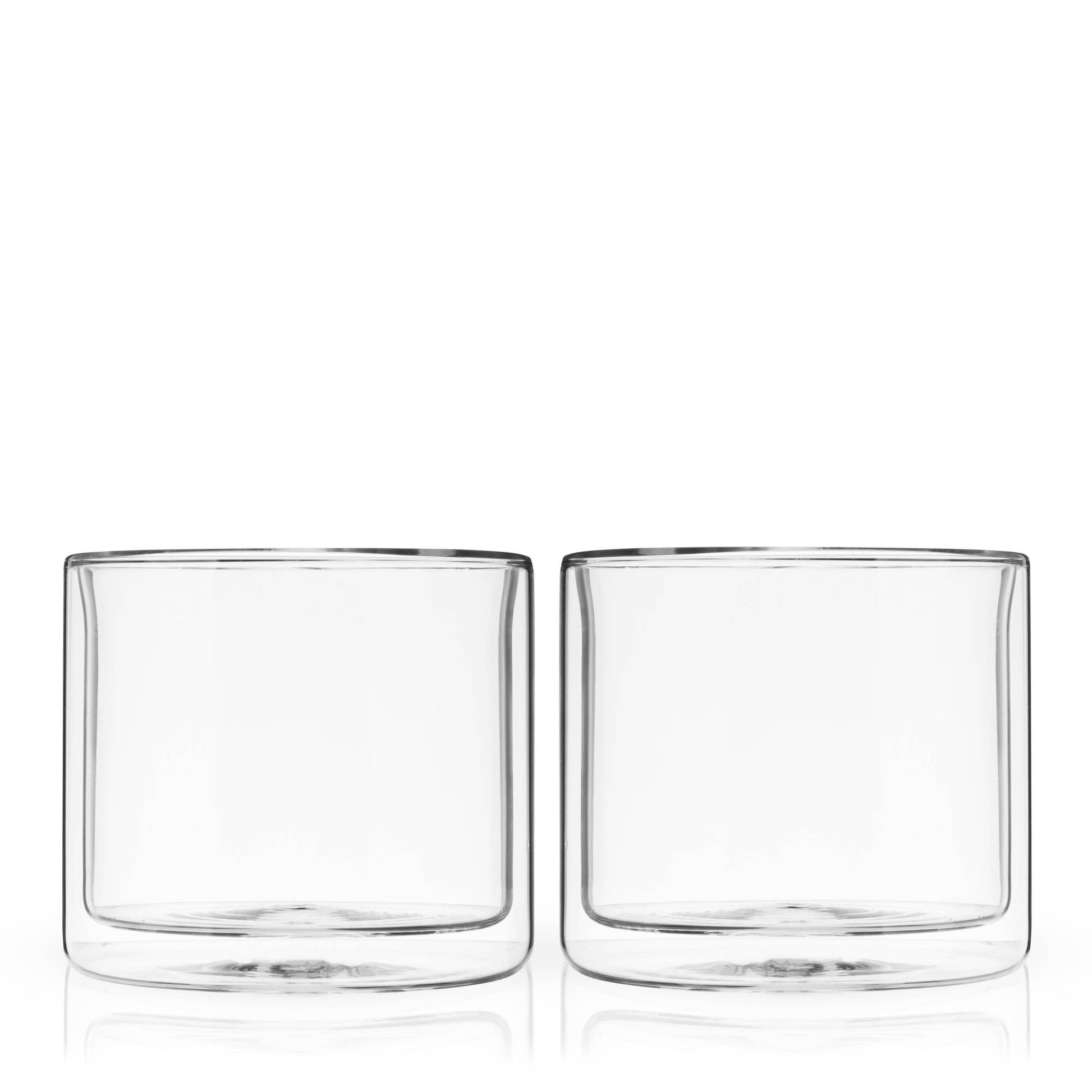 These double-walled glasses provide insulation and comfort, maintaining your drink’s temperature and preventing condensation. While they’re perfect for a classic Old Fashioned, they make great drinking glasses or cocktail glasses. * Quantity: 2 glasses * Materials: Borosilicate glass * Capacity: 7 oz. * Care: Dishwasher safe