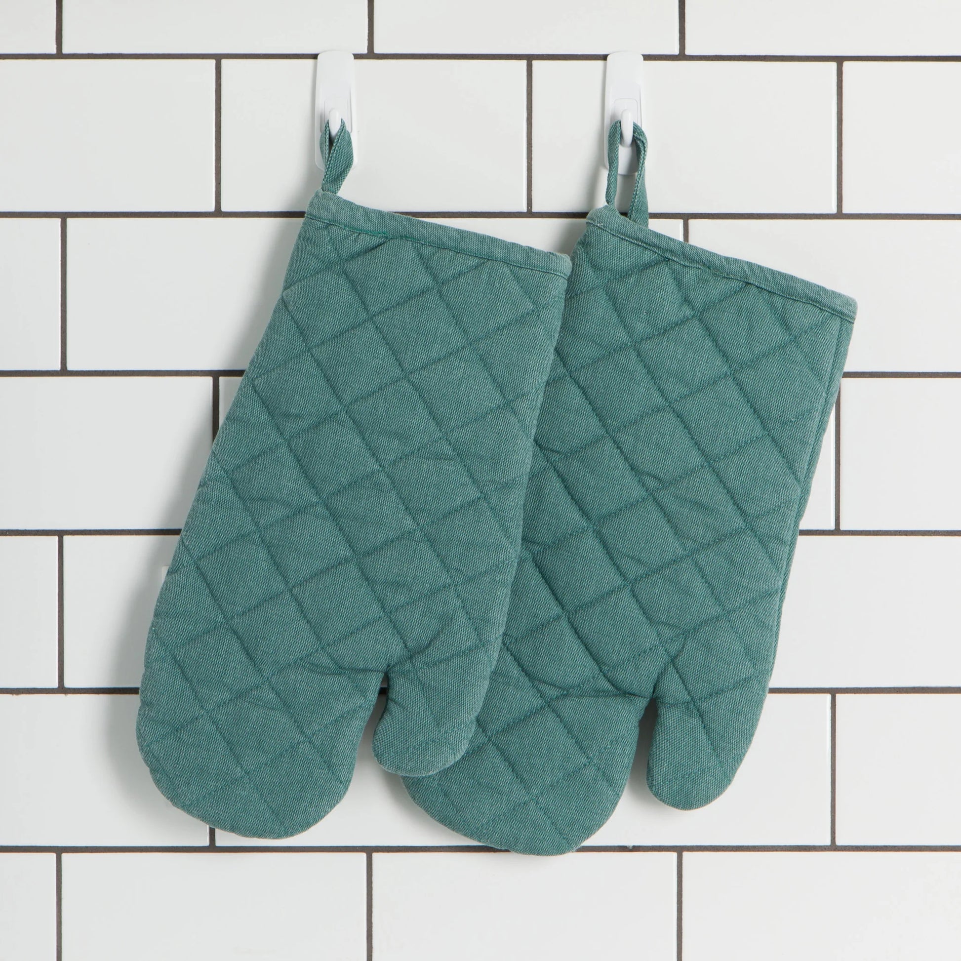 Prewashed and soft, these oven mitts give solid heat protection. A hanging loop makes storage easy, and these mitts will soften with each wash. Part of the medley collection of color-coordinated kitchen and table linens from Danica heirloom.