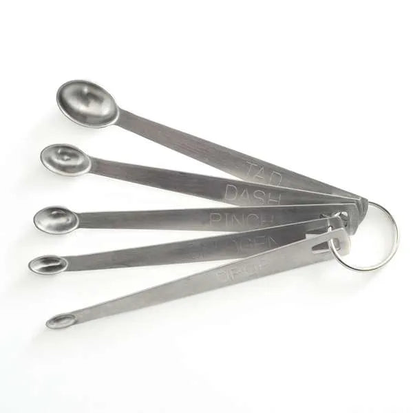 Handles are imprinted with measurements. Keep your measures consistent and remove the mystery of what exactly is a tad, dash, pinch, smidgen and drop!