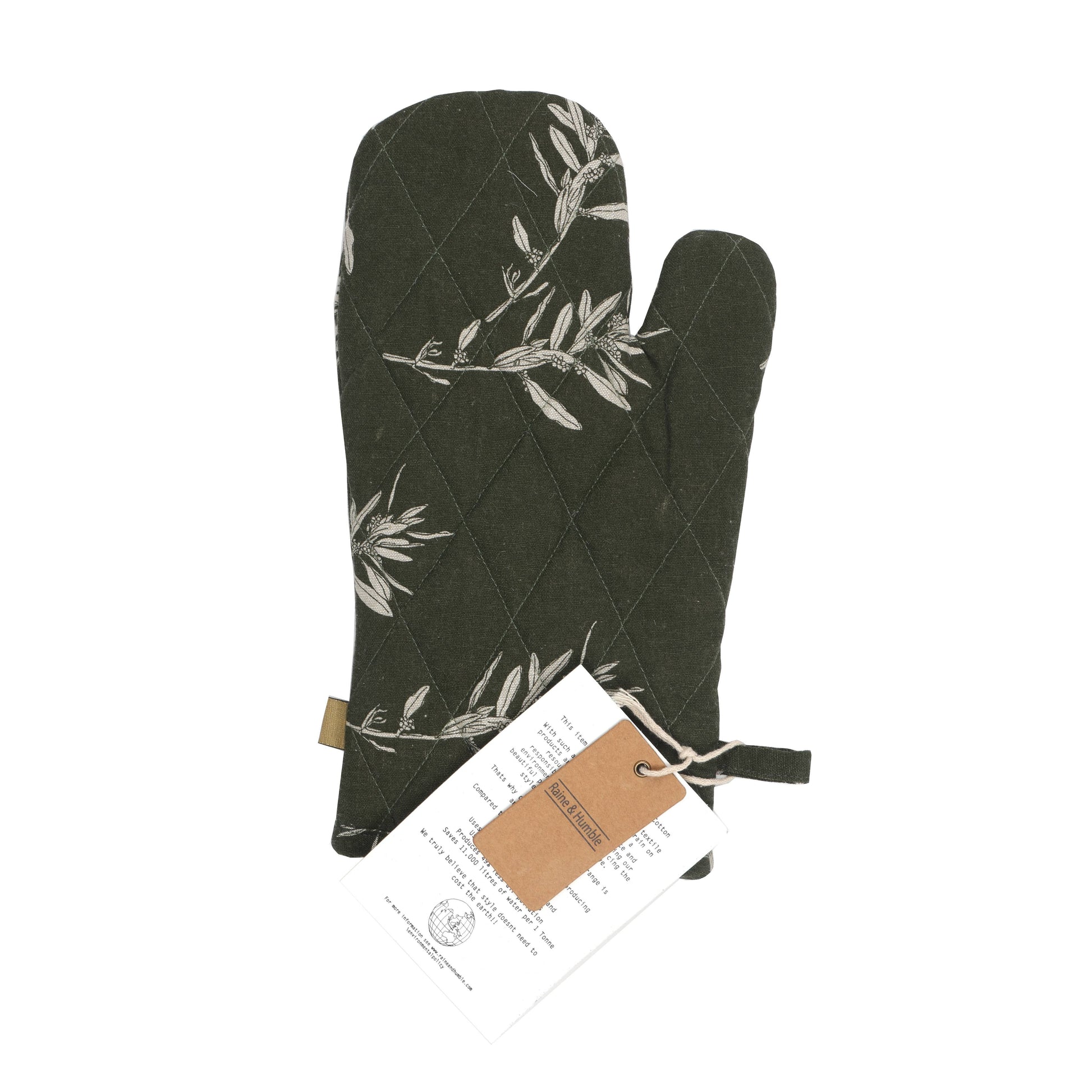 Crafted with 100% recycled cotton, these oven mitts boast a beautiful Olives and Branches pattern that will add a touch of charm to your kitchen. The quilted design provides superior heat protection. Made entirely from recycled cotton, these mitts are a sustainable choice for the eco-friendly chef. The delightful Olives pattern adds a pop of personality to your kitchen decor.
