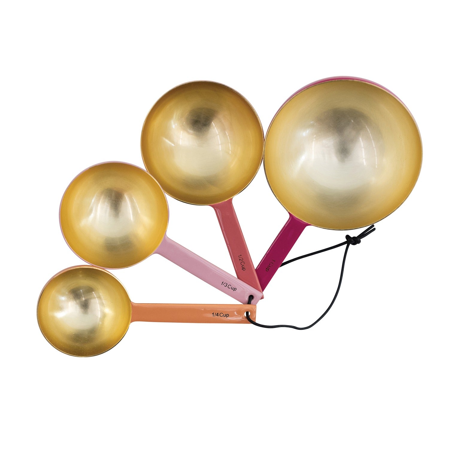 Upgrade your kitchen with these sleek enameled stainless steel measuring cups. Built to last and easy to store, this set of 4 comes in handy for precise and accurate cooking. Plus, elegantly tied together with a leather tie and includes four sizes, these cups add both style and functionality to any recipe.