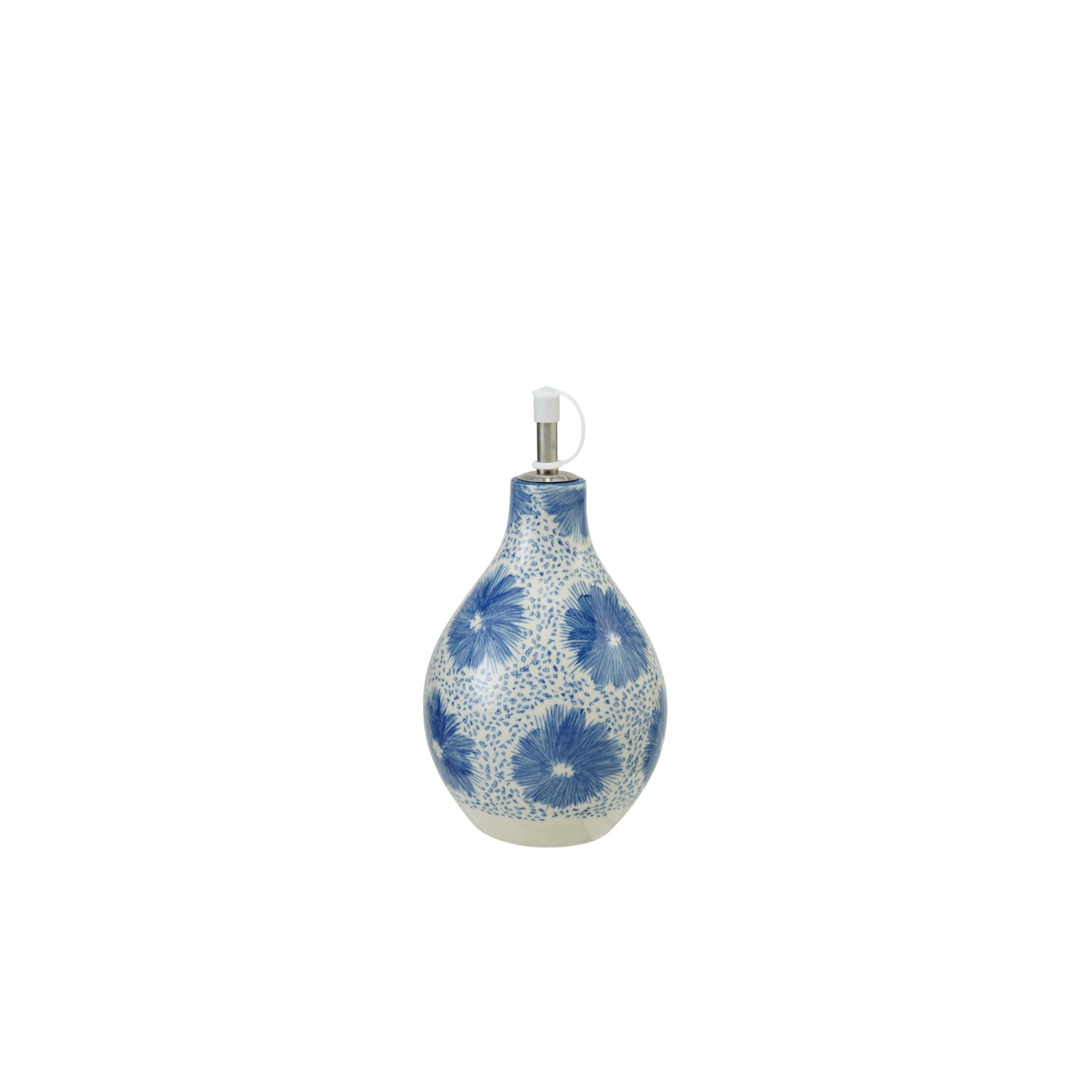 Elevate your kitchen with this charming stoneware oil cruet, featuring a classic blue and white design that brings timeless elegance to your countertop. Crafted from durable stoneware with a practical stainless steel spout, it pours smoothly and precisely every time. The included plastic cover keeps your oil fresh and protected when not in use. Perfect for drizzling over salads, bread, or finishing dishes with style. A functional piece that doubles as a beautiful kitchen accent.