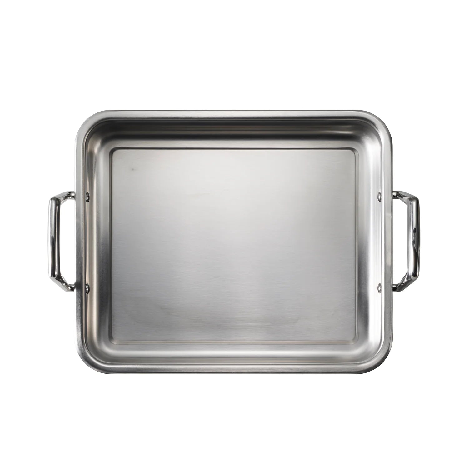 Master the art of roasting with the Tramontina Signature Roasting Pan, engineered for restaurant-quality results at home. This heavy-gauge 18/10 stainless steel pan features a removable basting grill that elevates your meat or fish, allowing heat to circulate underneath while drippings collect below for rich, flavorful sauces. The sturdy cast stainless steel handles, reinforced with solid rivets, deliver a secure, balanced grip even when your pan is loaded. Whether you're preparing a show-stopping roast, whole bird, or fresh fish, this professional-grade pan delivers perfectly browned exteriors and tender, juicy interiors every time.