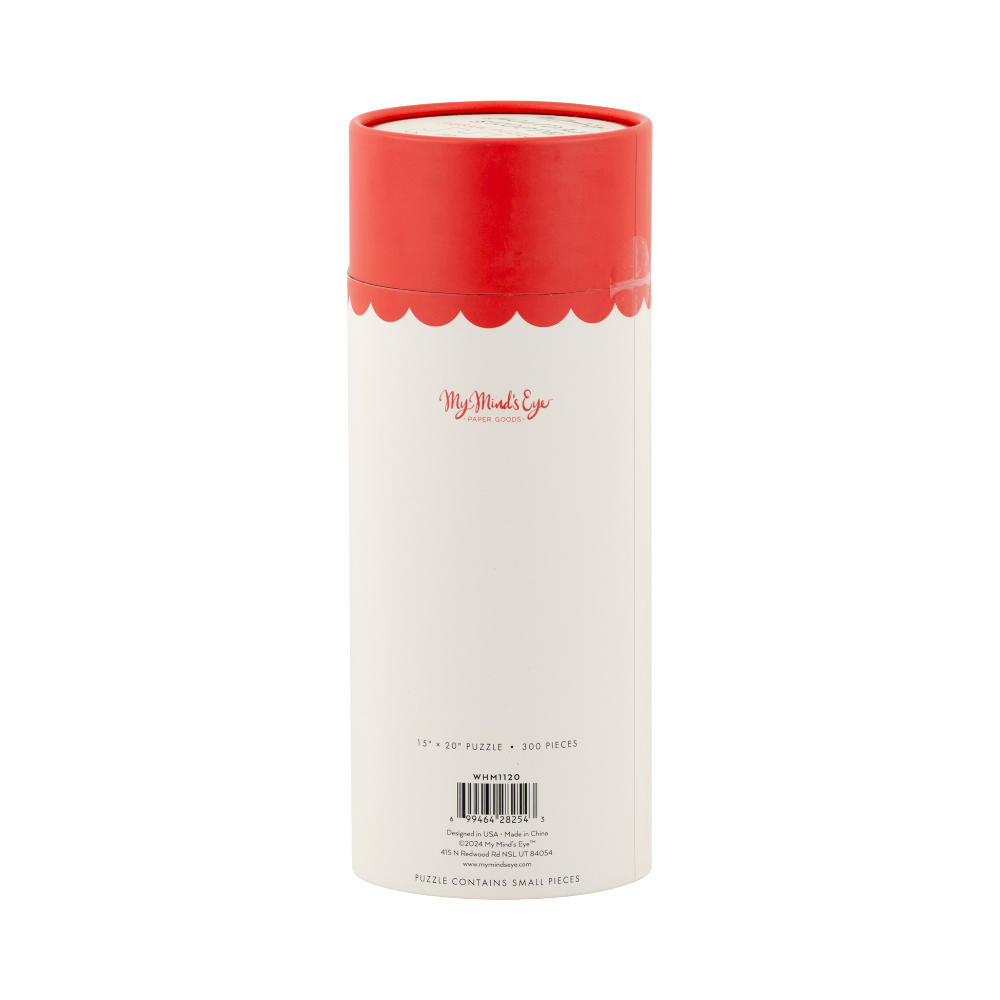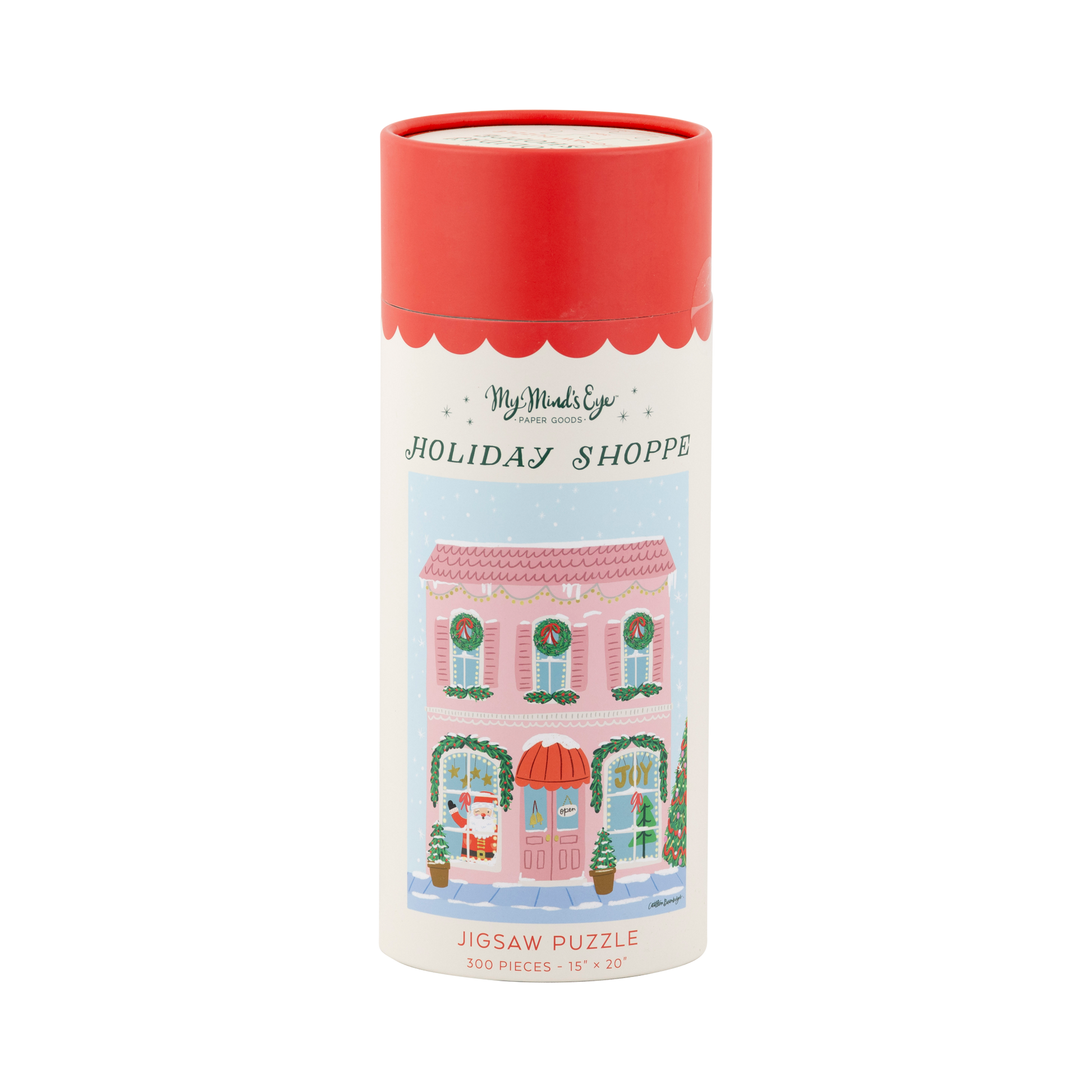 Assemble joy with the Whimsical Holiday Shoppe Christmas Puzzle. This playful puzzle features a holiday toy shoppe with a sneaky Santa peeking out. Spread festive cheer as you piece together this fun activity. Makes a perfect gift for all ages. * chipboard jigsaw puzzle * 300 pieces * finished puzzle size is 15" x 20" * gold foil accents