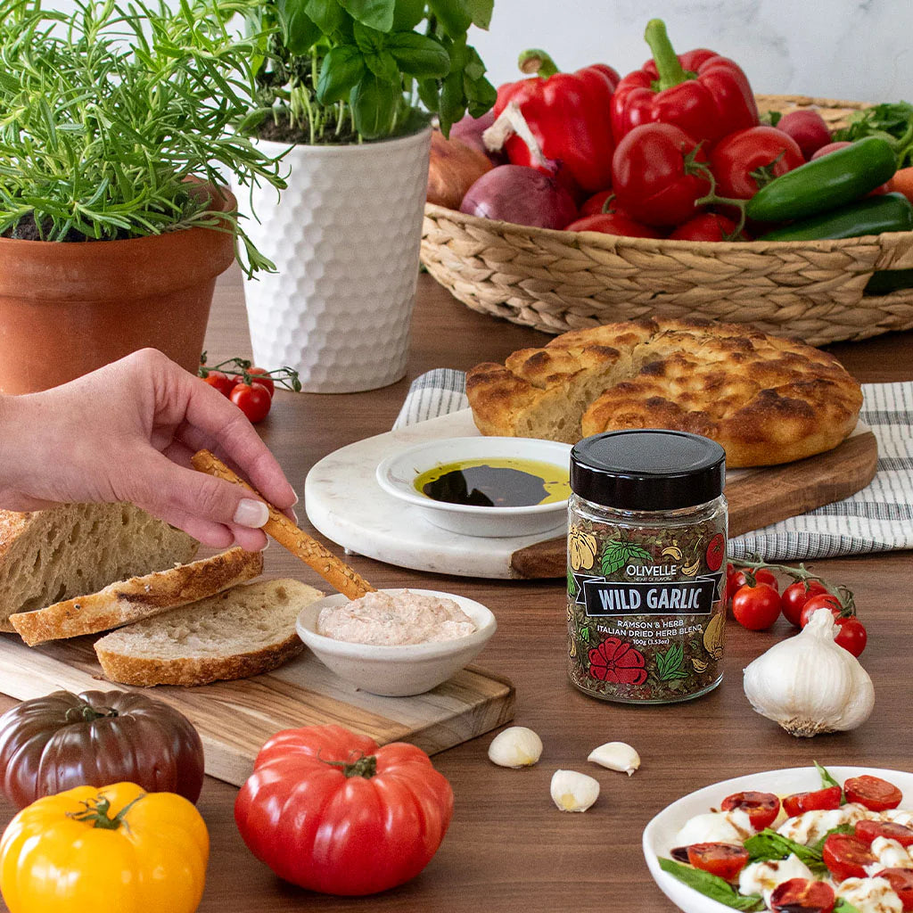 Wild Garlic Dried Herb Blend uses ramson (leafy wild garlic) to bring a garlic flavor that is less pungent than garlic cloves. This delicate blend of herbs is a staple for seasoning everything from party dips to scrambled eggs.