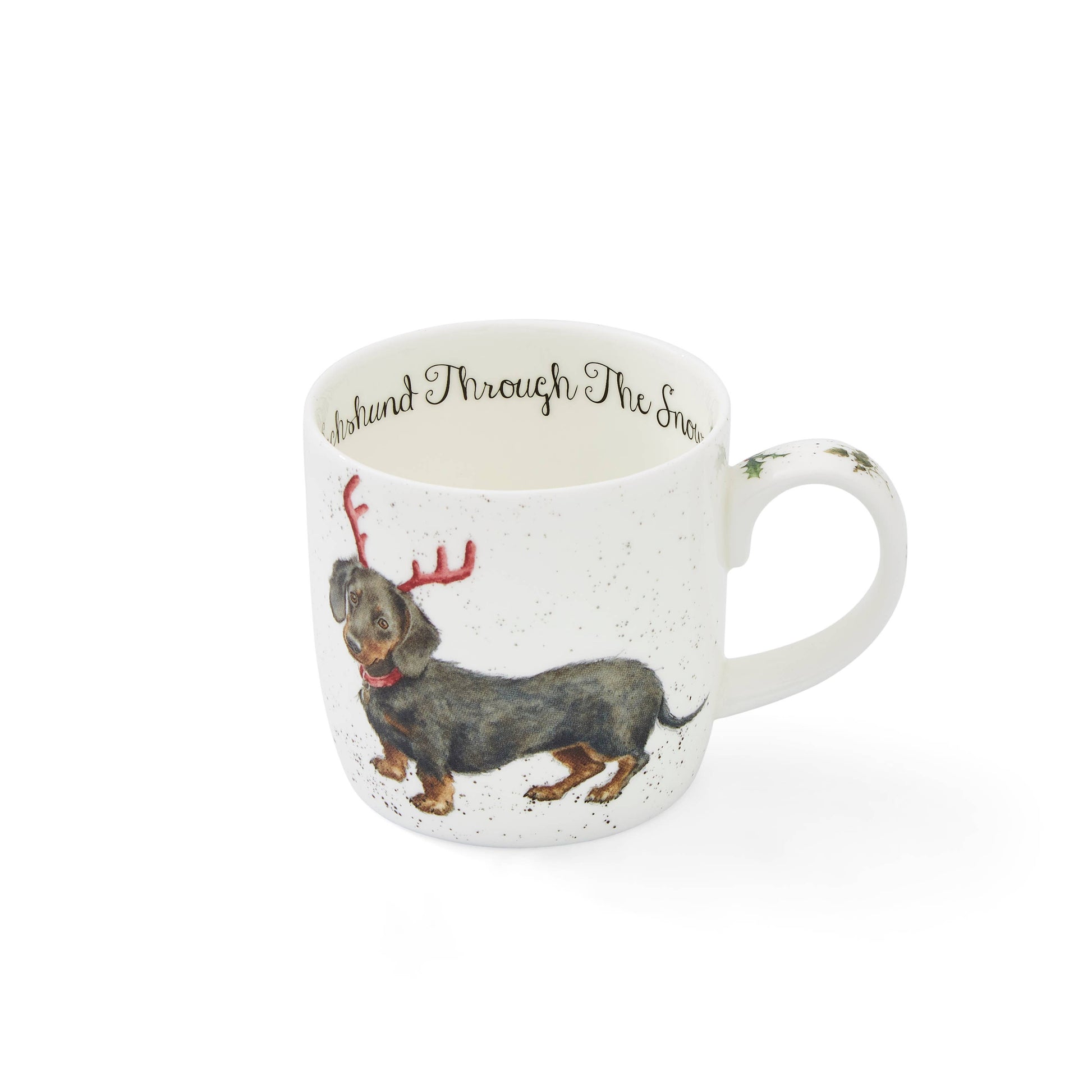 Warm up your mornings with this delightful Wrendale Dachshund through the Snow Mug. Featuring charming artwork of a playful dachshund enjoying a snowy adventure, this festive mug brings holiday spirit to your daily routine. Perfect for sipping hot cocoa, coffee, or tea during the winter season, it's a cozy companion that celebrates the joy of the holidays. Whether you're treating yourself or gifting it to a fellow dog lover, this mug combines whimsy with functionality. A cheerful addition to any kitchen that spreads seasonal cheer with every use.